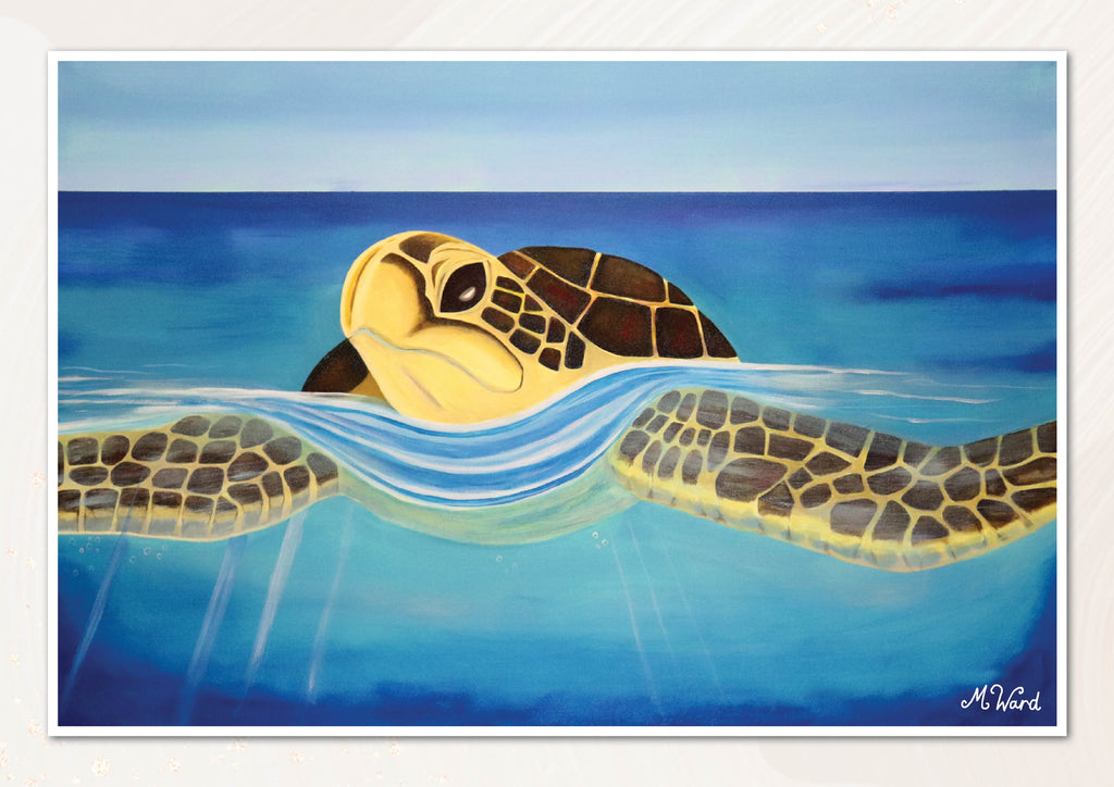 A collection of water colour and acrylic paintings created in 2019 during my artist residency in the Maldives, inspired by the peaceful world I experienced while diving and snorkeling among these ancient ocean guardians. Each piece captures the turtle’s gentle grace, steady rhythm, and deep spiritual presence. In many traditions, the turtle is a powerful totem symbolising wisdom, protection, patience, long life, and the quiet strength needed to move through life with purpose. Through this series, I honour the turtle as a spiritual guide - a reminder to slow down, breathe, trust the journey, and stay grounded while navigating the ever-changing tides of life.